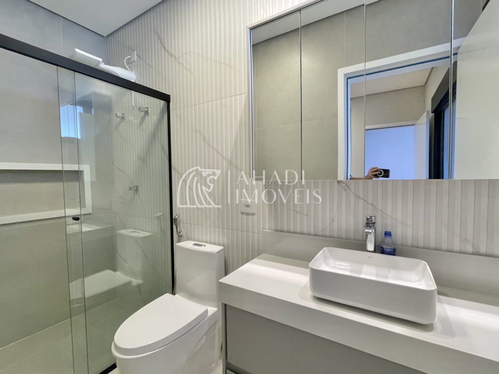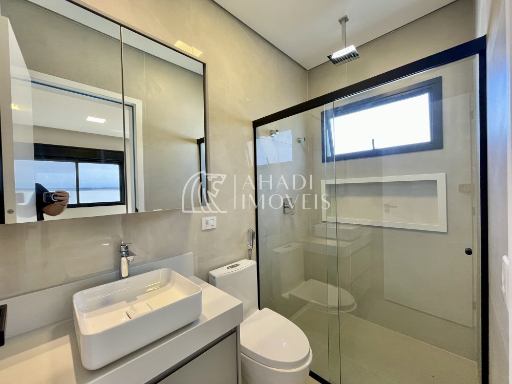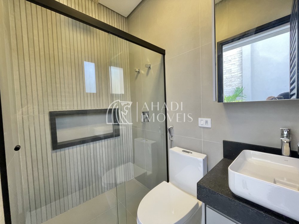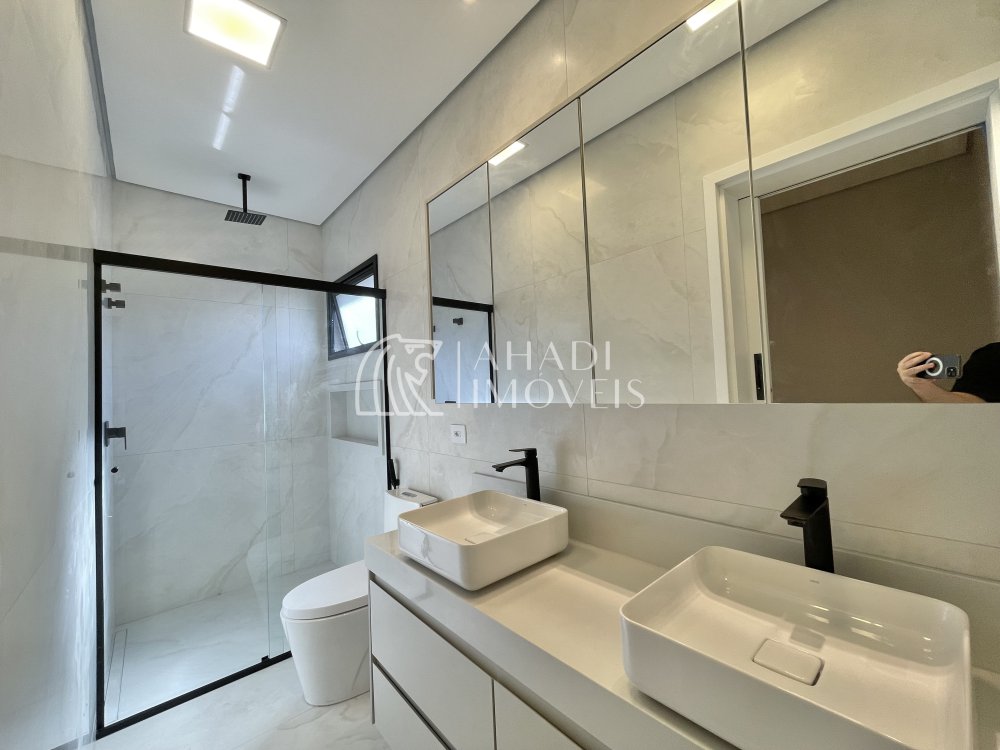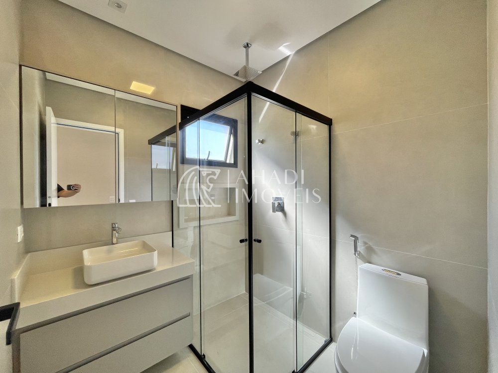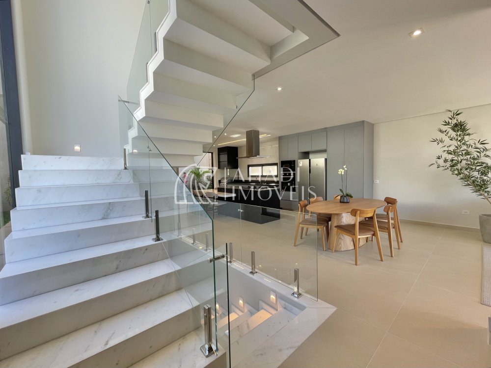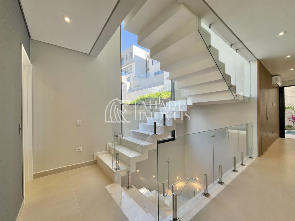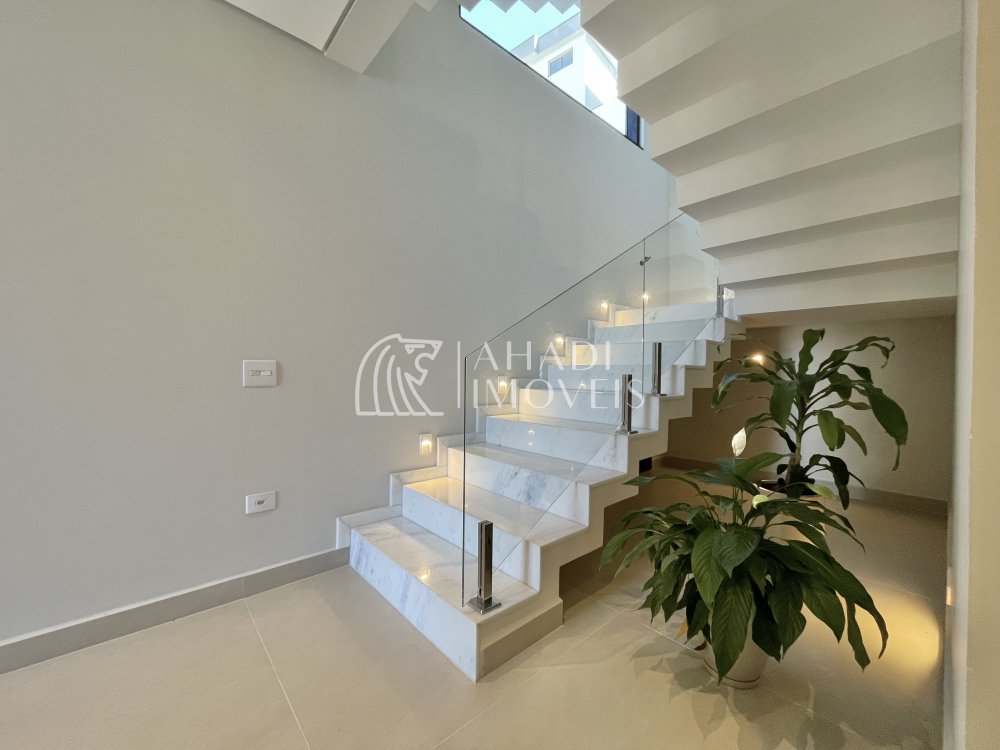 Destaque para os acabamentos de alto padrão, com porcelanatos 1,20 x 1,20 e escada em mármore, além de banheiros completos com cubas Deca. O imóvel ainda possui energia fotovoltaica, aquecimento a gás e sistema de pressurização, unindo eficiência e tecnologia.
